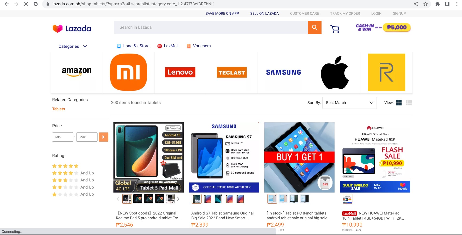 Screenshot von lazada.com.ph mit Darstellung der Desktop-Version und des Kachelformats