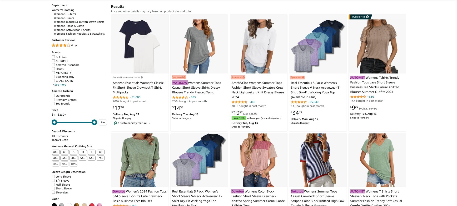 Wie Sie sehen können, finden sich unter den ersten acht Ergebnissen Marken wie YSYOKOW, AUTOMET und Dokotoo (alle im Screenshot lila hervorgehoben). Einige von ihnen sind sogar gesponsert (orange hervorgehoben), was darauf hindeutet, dass diese Marken nicht nur den Algorithmus selbst ausnutzen, sondern auch nicht davor zurückschrecken, in Kampagnen für Amazon-Produkte zu investieren.