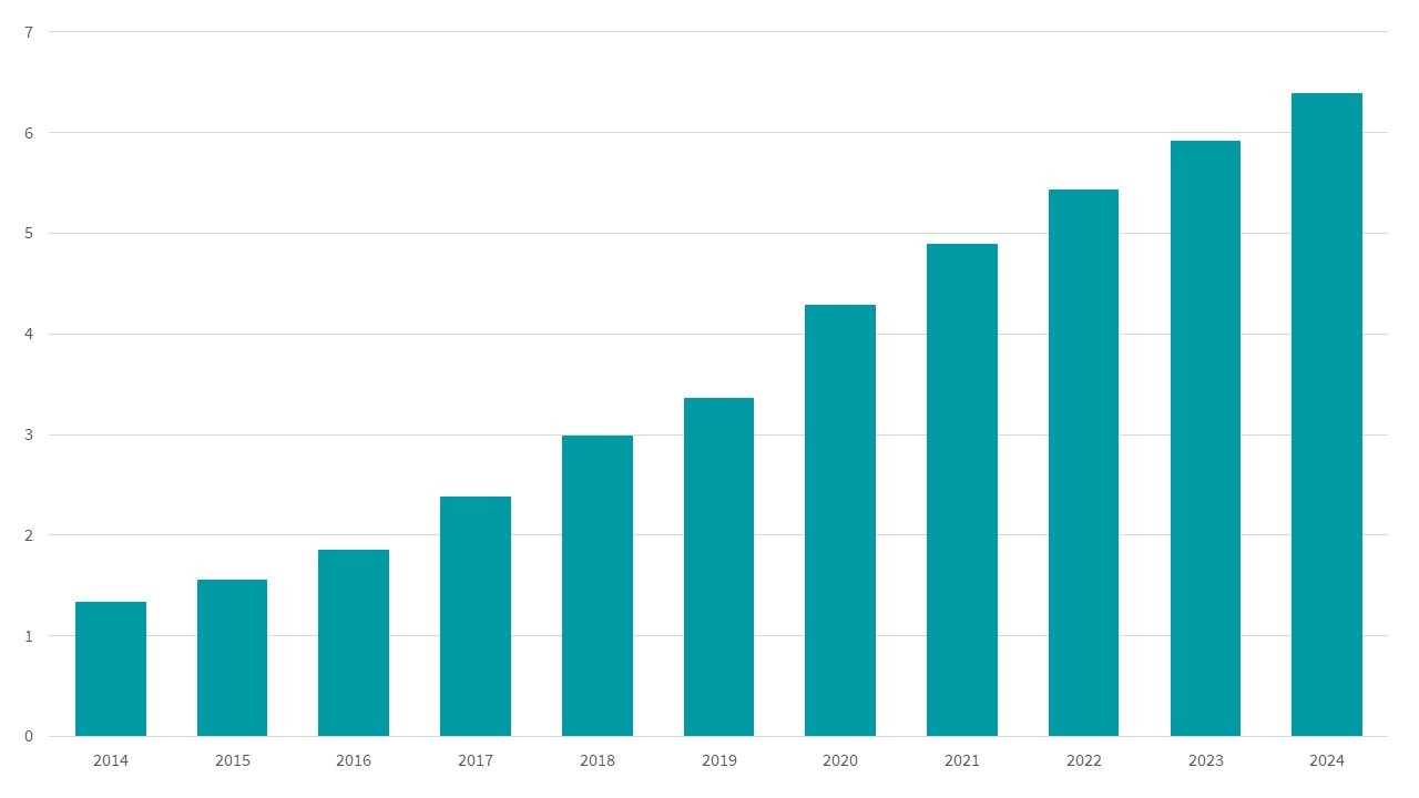 e-Commerce sales have skyrocketed, and there’s no indication that they’re going to slow down in the near future. In fact, from a "mere" $1.3 trillion in 2014, they were at $5.8 trillion in 2023, projected to reach over $8 trillion by 2027.
