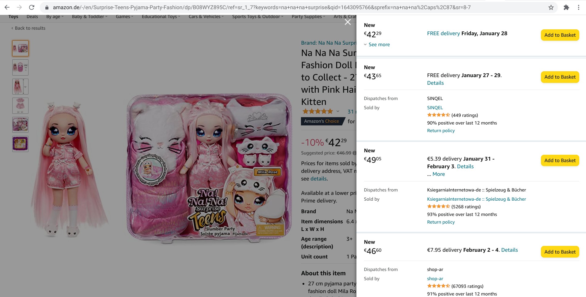 Screenshot of a product on Amazon.de with all selling options displayed