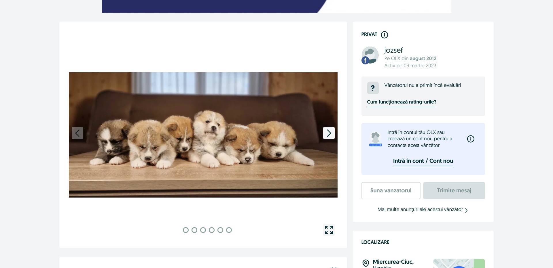 Screenshot of a random listing on olx.ro displaying puppies for sale